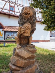 Wir starten beim Bräunlinger Bierlöwen am Ende der Kirchstraße. Hier stehen wir direkt an der Löwenbrauerei und da wir die Wanderung als kleinen Geburtstagsausflug machen, holen wir uns im angrenzenden Getränkemarkt der Brauerei ein Wegbier. Sehr empfehlenswert das Bier! Von hier aus überlegen wir erst kurz, in welcher Richtung wir den Rundweg gehen müssen und gehen sogar kurz in die falsche Richtung.